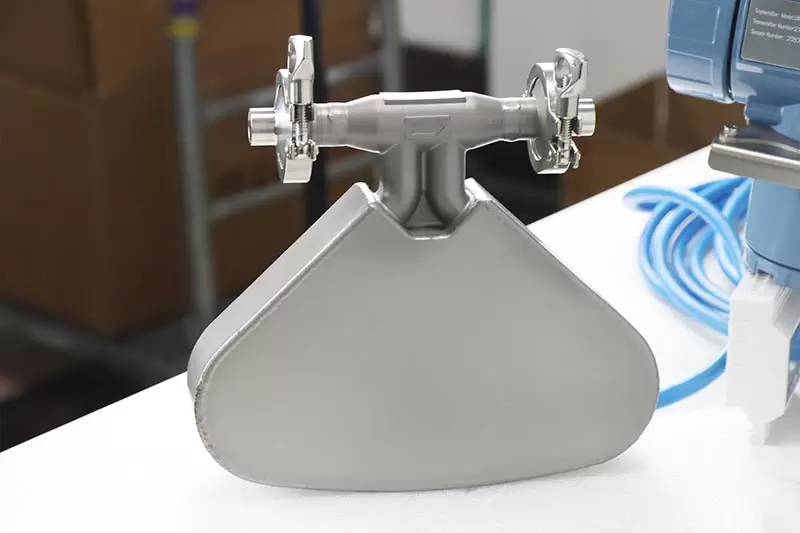 Q&T coriolis mass flow meter with Batch Control is widely used flow meter in process industry for its versatility and ability to directly give mass flow rate. Coriolis flow meter uses the principle of Coriolis Effect. When a tube is vibrating laterally and fluid is passed through it, it starts to distort due to weight and flow of fluid.