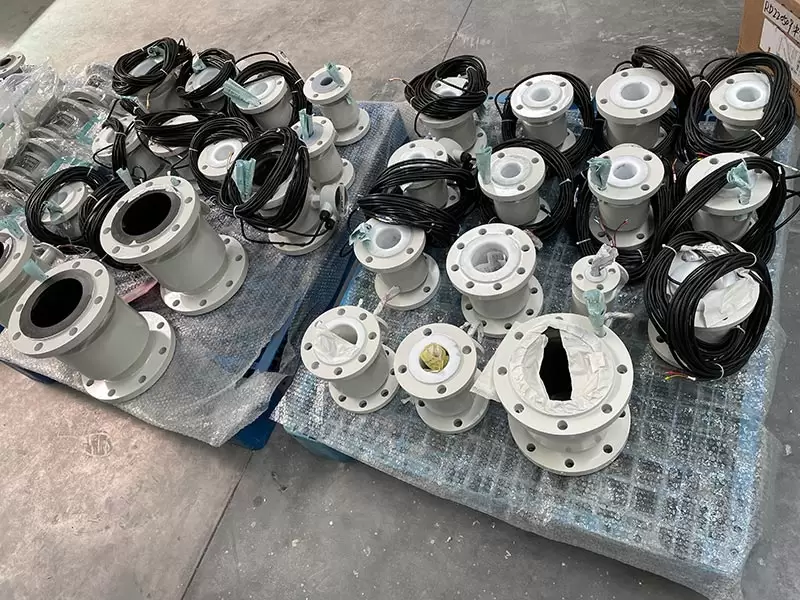 Q&T series Electromagnetic flowmeter follows the faraday law of electromagnetic induction.When the conductive liquid flows through the electromagnetic flowmeter,the induced electromotive force will be produced in the conductor,and the induced electromotive force is directly proportional to the velocity of conductive liquid,magnetic flux density and width of conductor(inside diameter of flowmeter,such induced electromotive force is detected by a pair of electrodes on the tube wall of the flowmeter,and the rate of flow can be acquired by mathematical operation.