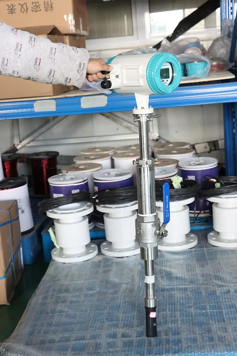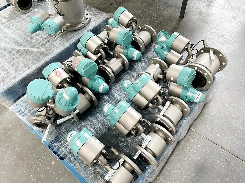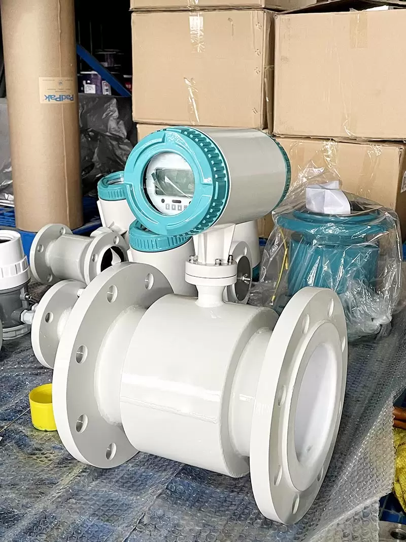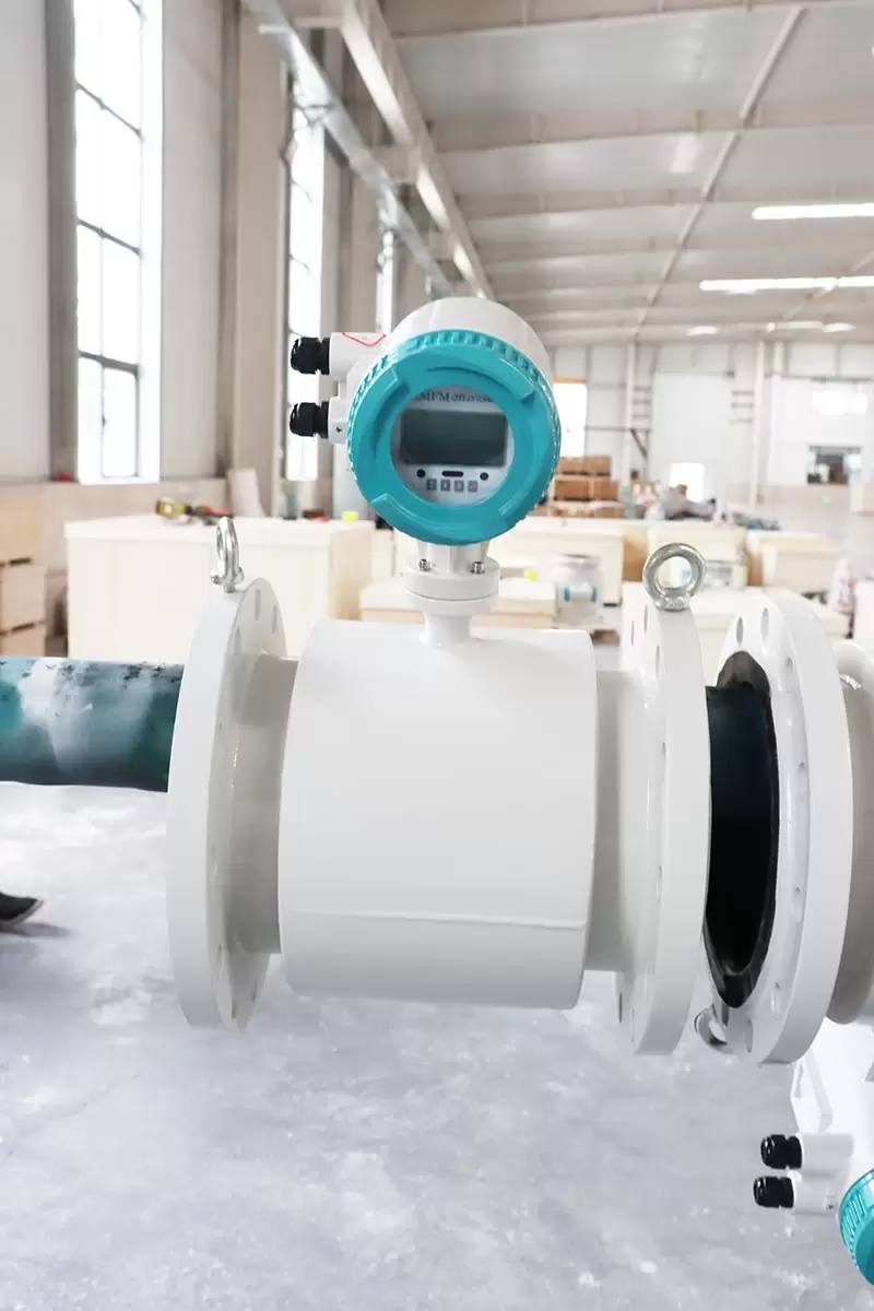 magnetic flowmeter will be tested by pressure equipment. QTLD waste water flow meter is calibrated by ISO/IEC 17025:2016 CNAS Approved liquid flow meter is installed in the chemical plant to measure waste water, the pipe is PVC, so we configure grounding rings to have better grounding to protect the electromagnetic flow meter.