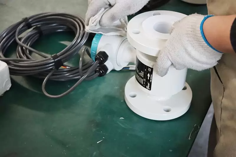 Electromagnetic flowmeter consists of sensors and converters in two parts. The product is based on Faraday’s law of electromagnetic induction