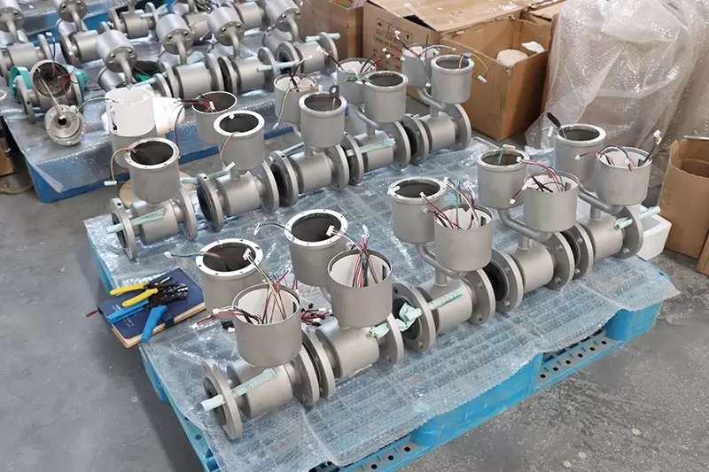 inline magnetic flow meter is composed by magnetic flow meter and pt1000 temeprature sensor, can calibrated on liquid test bench, standard accuracy is ¡À0.5%