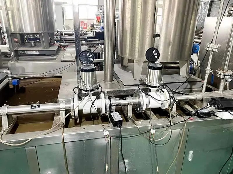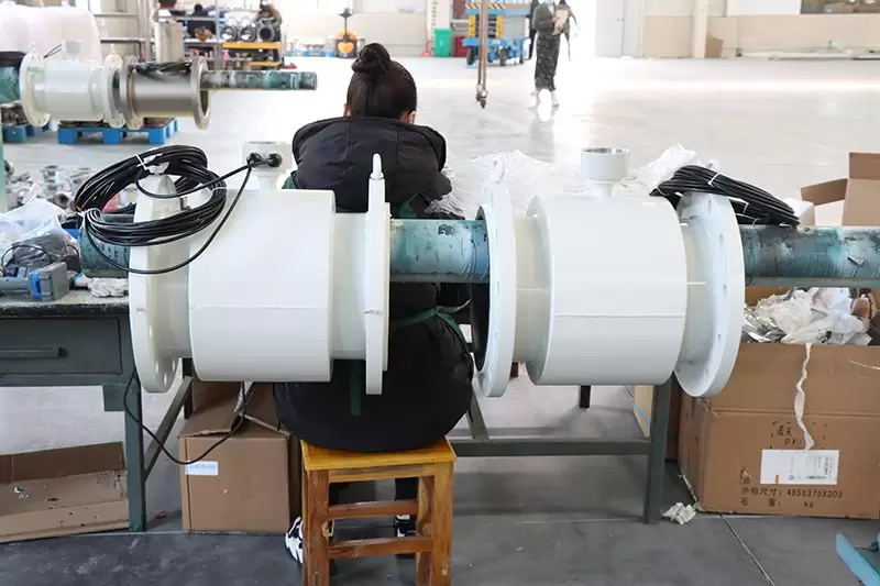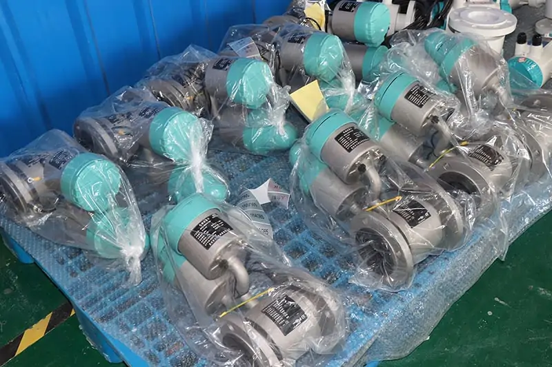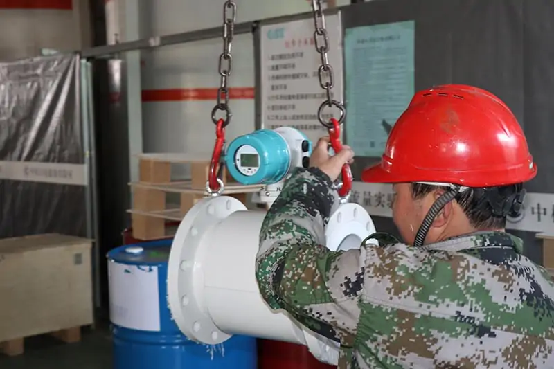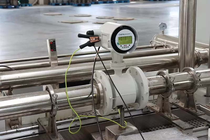 communication of magnetic flow meter is RS485, HART, Profibus DP and PA. Measurement of magnetic flowmeter is independent of fluid density, viscosity, temperature, pressure, and conductivity. the pipe is PVC, so we configure grounding rings to have better grounding to protect the electromagnetic flow meter.