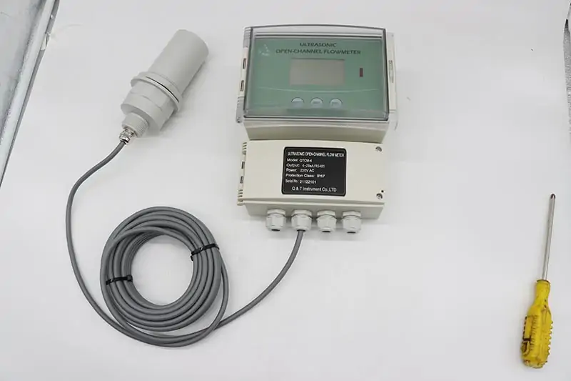 For the Doppler Open Channel flow meter, it is a kind of sensor that measures flow velocity and flow rate in natural waters, channels or pipes. Wall-mounted type Doppler Open Channel flow meter consists of a wall-mounted flow calculator and a transducer. The transducer consists of a flow velocity sensor, a water depth sensor of ultrasonic principle, a water depth sensor of pressure principle and a conductivity sensor, which are separately used to measure flow velocity, depth, and conductivity of water in rivers, streams, open channels and pipelines.
