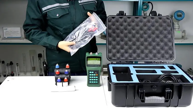 Portable Flow Meter Ultrasonic Flowmeter Portable Flow Meter Handheld Ultrasonic Flowmeter is a non-contact instrument, which can measure the flow of medium with large diameter and can also be used for the measurement of medium that is not easy to contact and observe. Its measurement accuracy is very high, and the external clip-type installation can reach the highest accuracy of ¡À1.0%. It is almost not disturbed by various parameters of the measured medium, especially it can solve the strong corrosiveness, non-conductivity, Flow measurement of radioactive and flammable and explosive media. Measuring accuracy: +/-1.0% of FS Transducer temperature: -30~90¡ãC/-30¡ãC~160¡ãC Measuring clean liquids Battery-powered,for 12 hours Communication: RS232